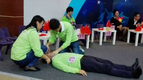 我園代表現(xiàn)場演示“心肺復(fù)蘇”急救處理方法。