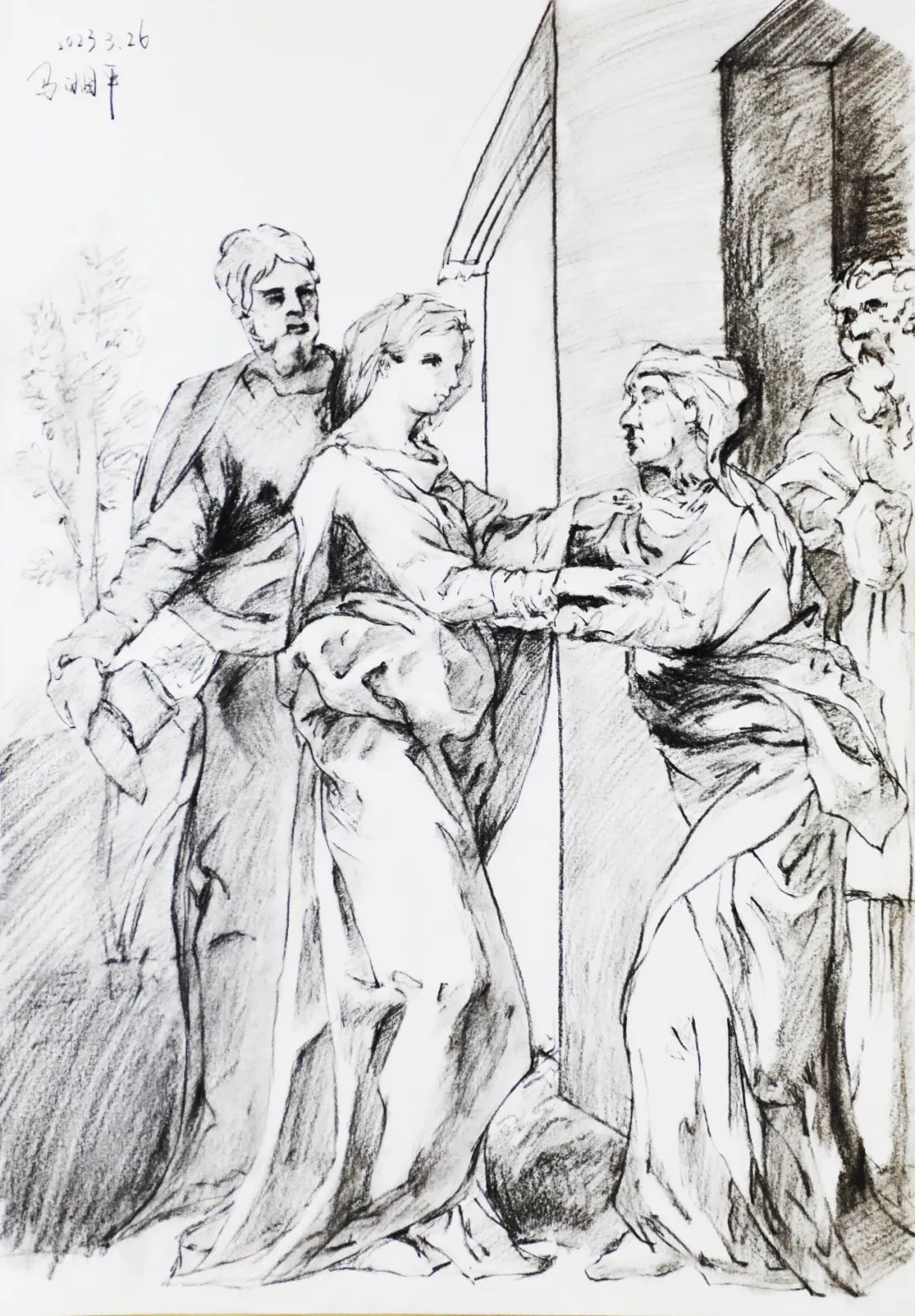 速寫是一種相對快速的素描形式。所選學(xué)生速寫作品畫面干凈,構(gòu)圖舒適,線條流暢度高,疏密、粗細(xì)、虛實變化表現(xiàn)好,體積感強,人物造型動態(tài)比例準(zhǔn)確,畫面節(jié)奏感、黑白灰處理明確,速寫味濃。