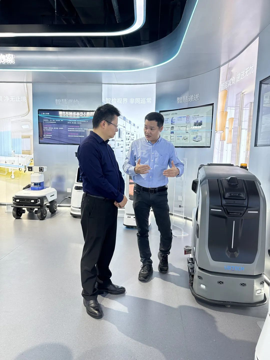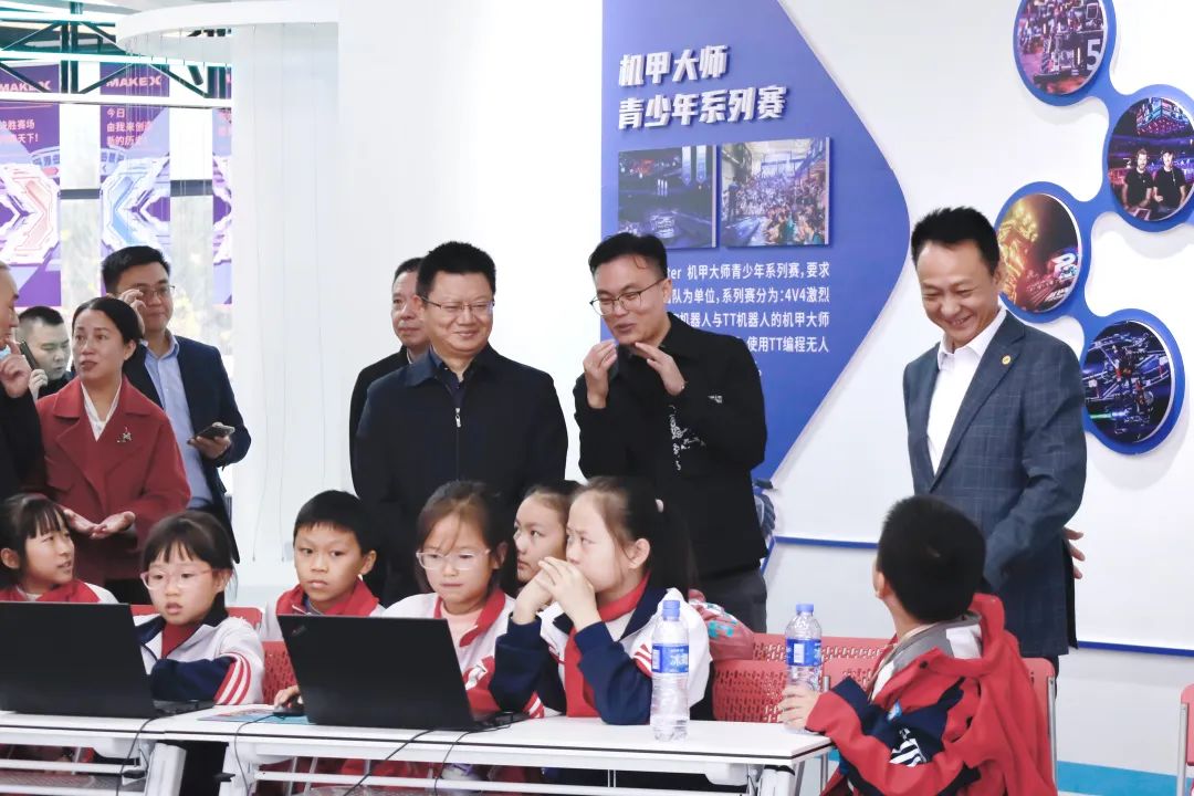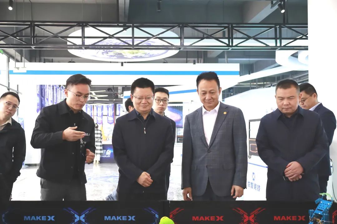 在科創(chuàng)中心,宋遠(yuǎn)標(biāo)董事長對(duì)于目前場(chǎng)館建設(shè)現(xiàn)狀及課程開展情況進(jìn)行了詳細(xì)介紹,并陪同長壽區(qū)政府考察團(tuán)一行進(jìn)行體驗(yàn)觀摩了教學(xué)區(qū)、人工智能區(qū)等多個(gè)板塊。