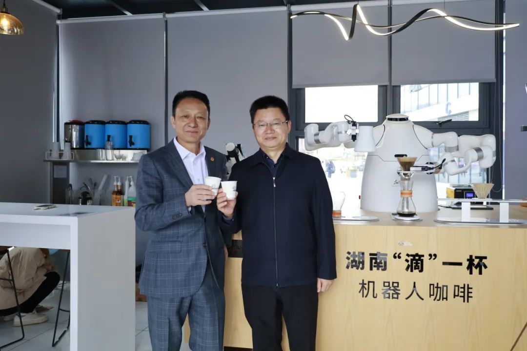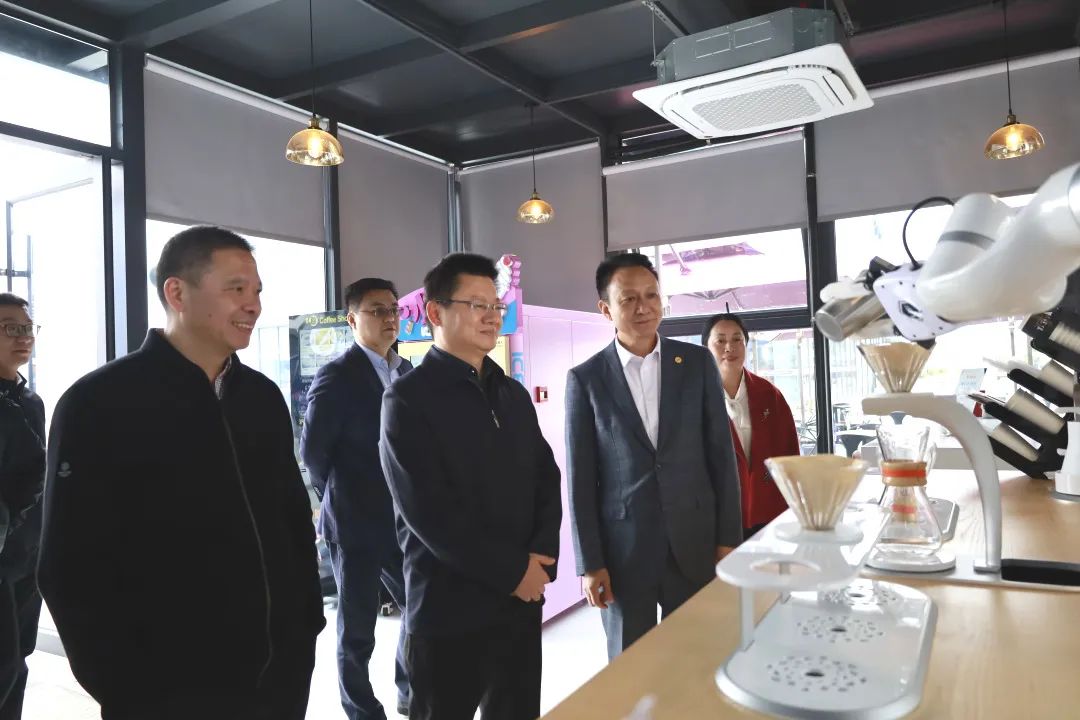 隨后,宋遠(yuǎn)標(biāo)董事長陪同長壽區(qū)政府考察團(tuán)移步機(jī)器人咖啡屋,正在沖泡咖啡的智能機(jī)器人,吸引了考察團(tuán)的領(lǐng)導(dǎo)們駐足。