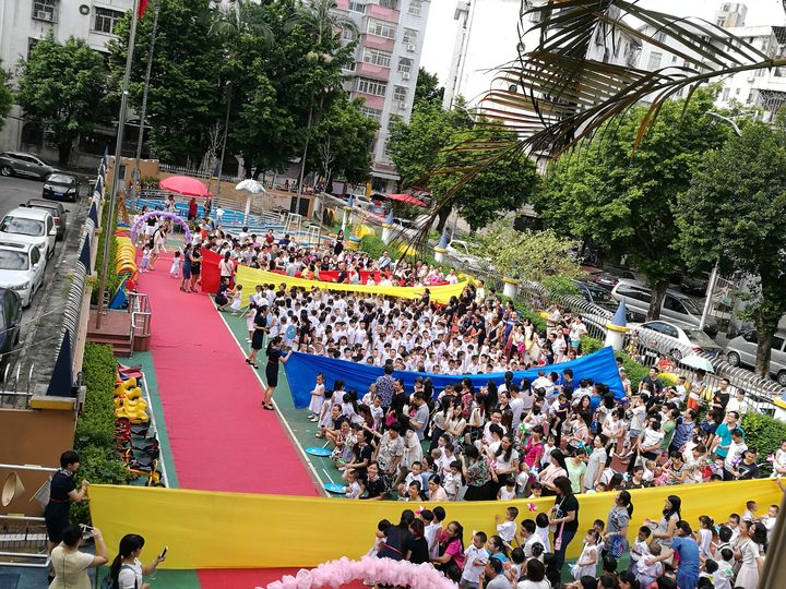 全體教師圍繞“一個微笑、一個擁抱、一句問候、一個手印、一個游戲、一份禮物”營造溫馨氛圍,讓新生對幼兒園、與班級體建立初步的認識與情感交流。伴隨著主持人的宣布,新生家長和幼兒手拿風車一起走過紅地毯,中大班的哥哥姐姐們在操場中間以熱情的歡迎詞迎接我們的新朋友。結(jié)合奧運“堅持、自信、尊重”的精神,花園幼兒園的老師秉承著奧運的精神,將為孩子們帶來更快樂、更溫馨的樂園。弘揚奧運精神,為孩子們創(chuàng)造奇跡??捎H可愛的13位班主任進行了自我介紹,迎接小朋友回“佳”,對新小朋友的加入表示歡迎。新的學期,新的希望,園長媽媽也給我們可愛的小朋友送祝福,祝愿小朋友在花園幼兒園健康快樂的成長,家長與老師一起攜手,讓我們一起走進孩子,理解孩子,欣賞、鼓勵孩子,讓毎一個孩子在遠恒佳花園幼兒園都擁有最佳的人生開端。最后在飛揚的蒲公英全園結(jié)束本次開學典禮活動,開啟小班級親子半日陪讀活動。
